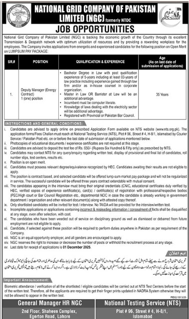 The last date to apply for this job is 01th December 2025.National Grid Company of Pakistan Limited Jobs In Islamabad November 2025 Advertisement